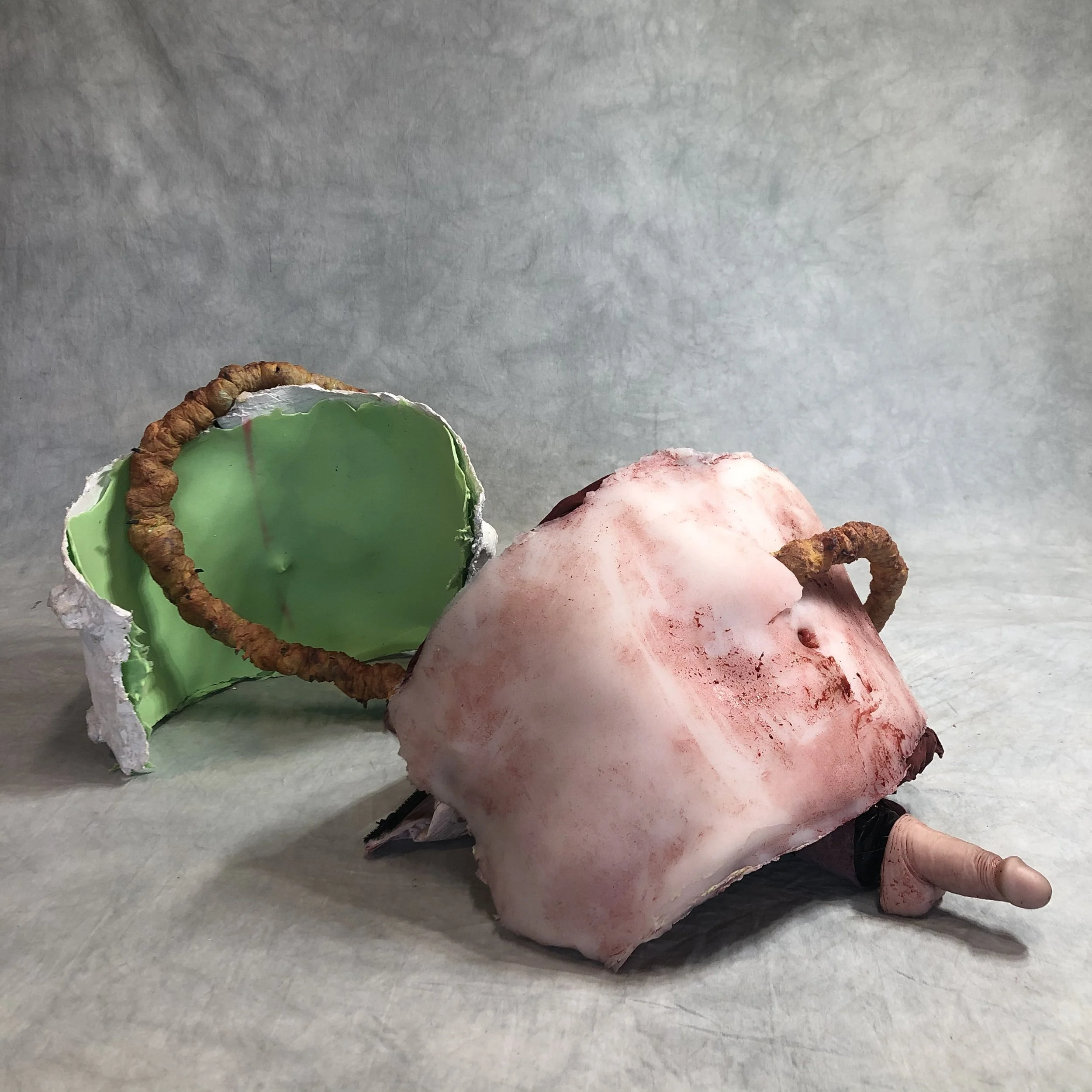 Ben built a 2 stage, 2 axis cable operated tentacle mechanism, shown here wearing a large tongue skin.